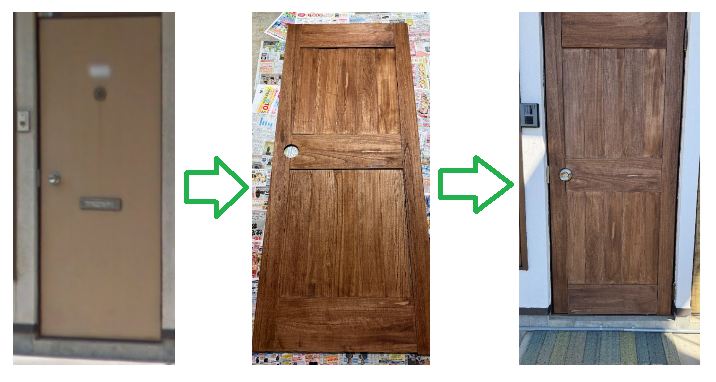 で、先日。ちょっと時間ができたので、古い玄関ドア、いじってみました。