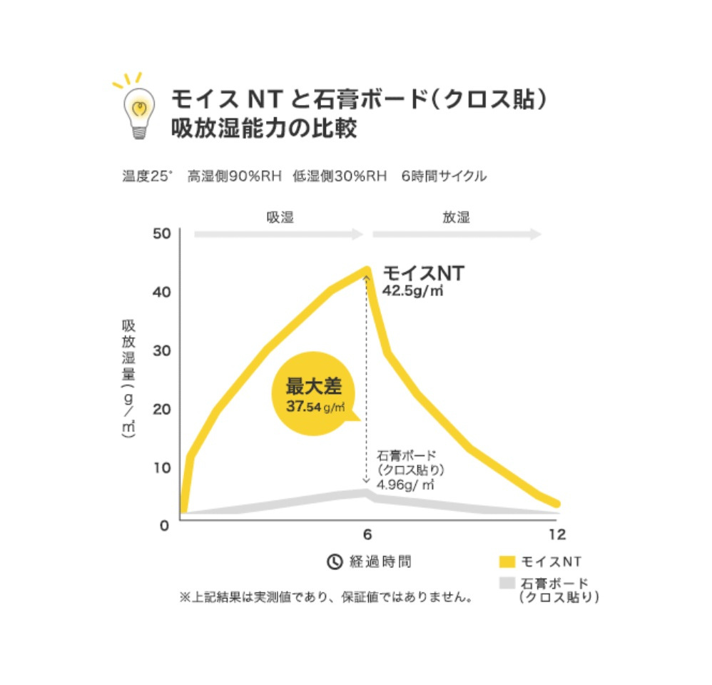 低くなると放出し、湿度の高い夏や乾燥する冬も、快適さを保ち結露やカビを防ぎます。