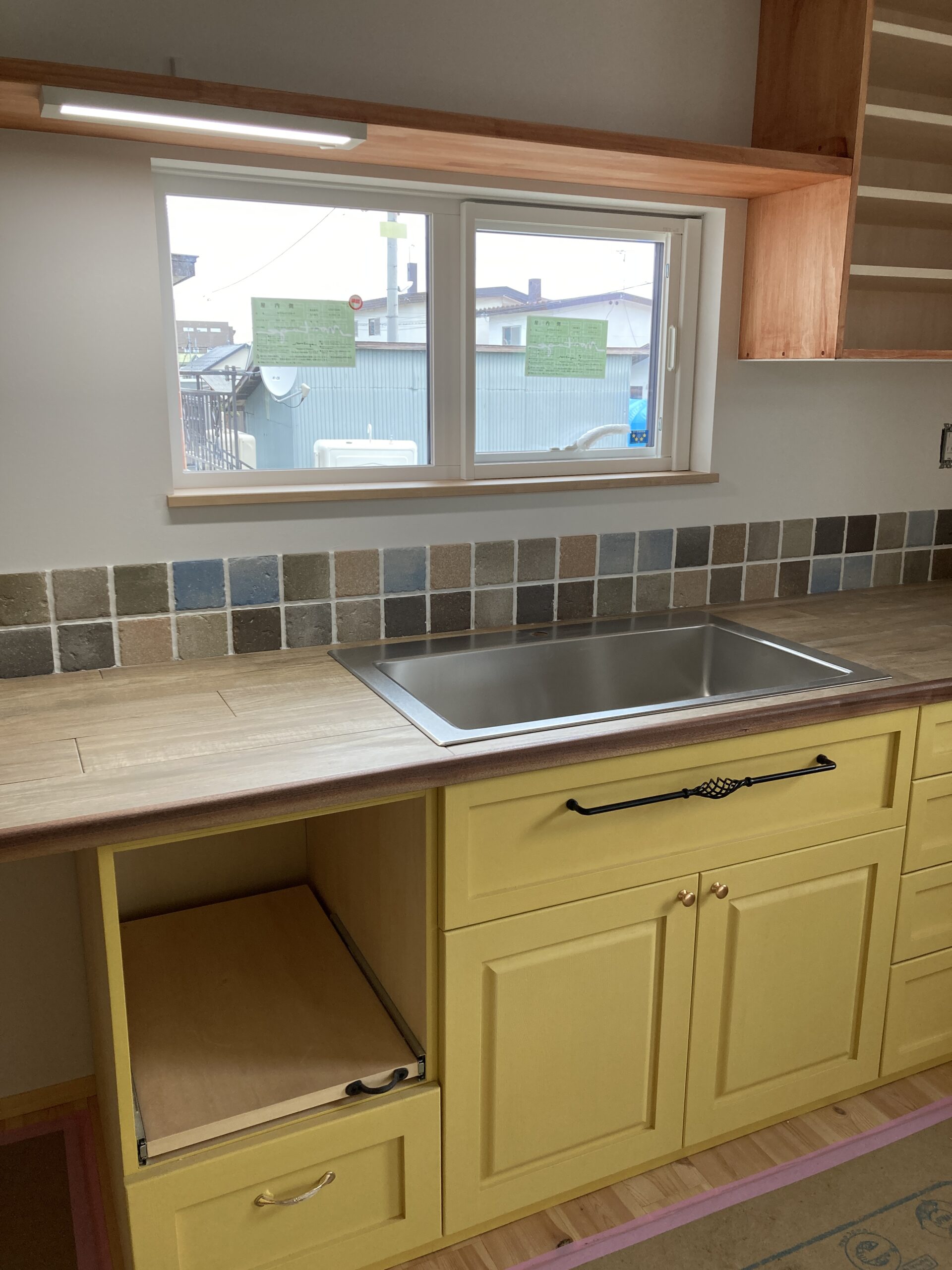東三輪「朝陽の家」のキッチンが着々と仕上がってきました。