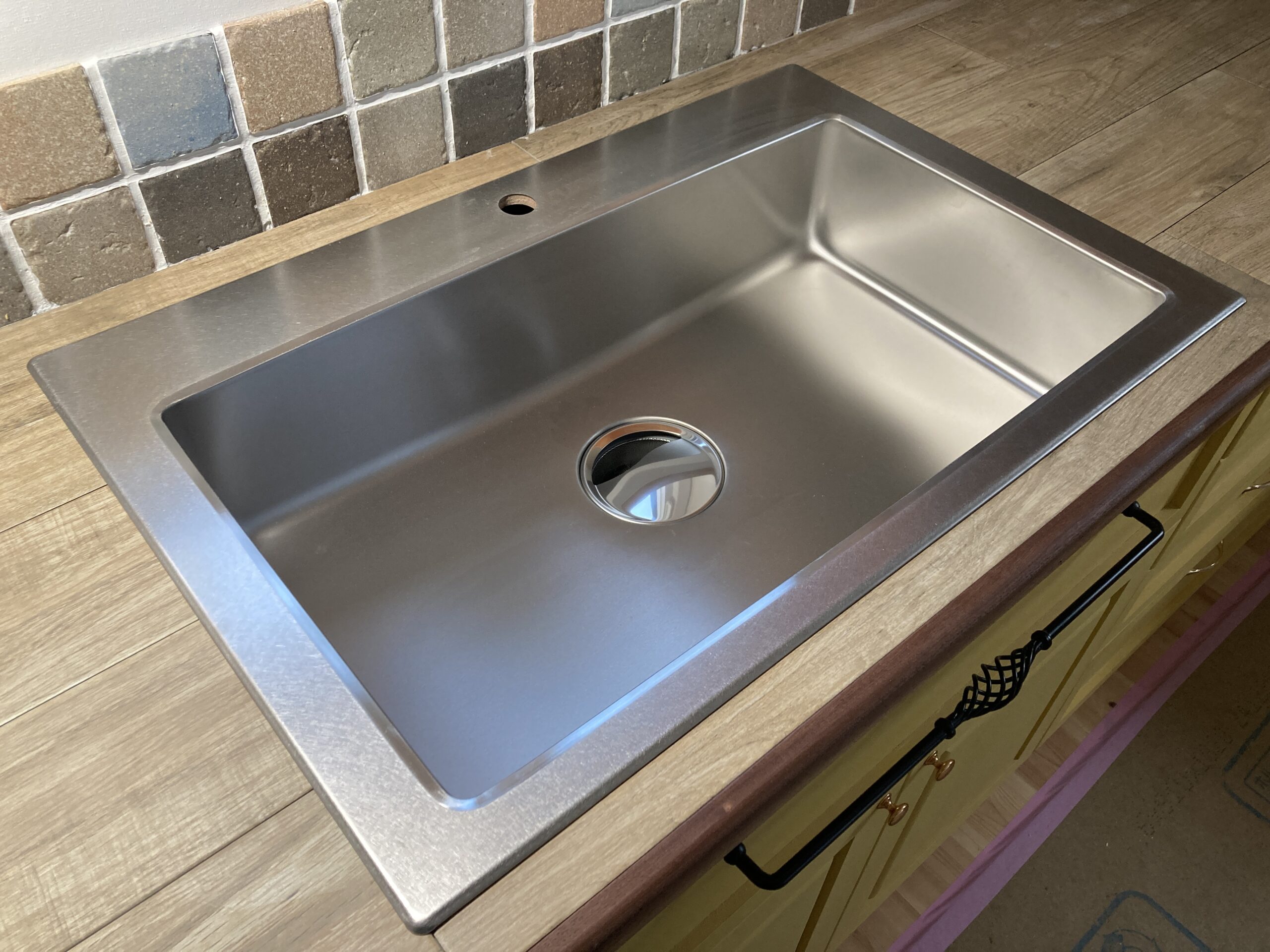 前回の現場分でメーカー在庫が無くなってしまったCOMOシンクから、今回はスクエアなステンレスシンクとしました。
