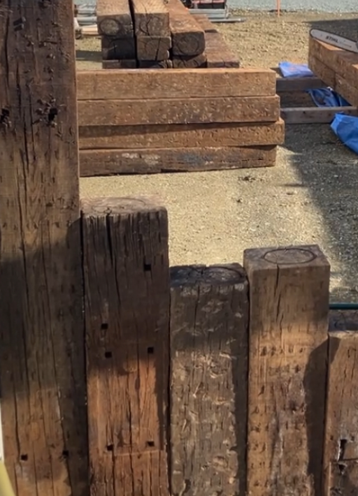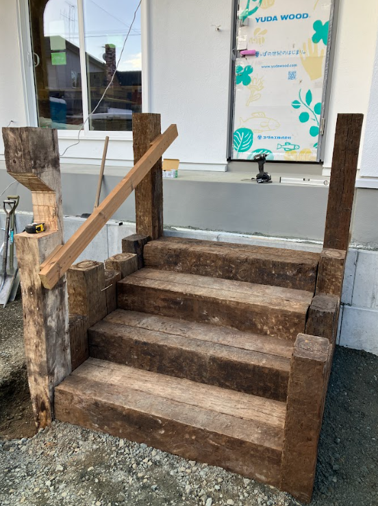 東三輪の「朝陽の家」「夕陽の家」で、枕木階段の施工を行いました。