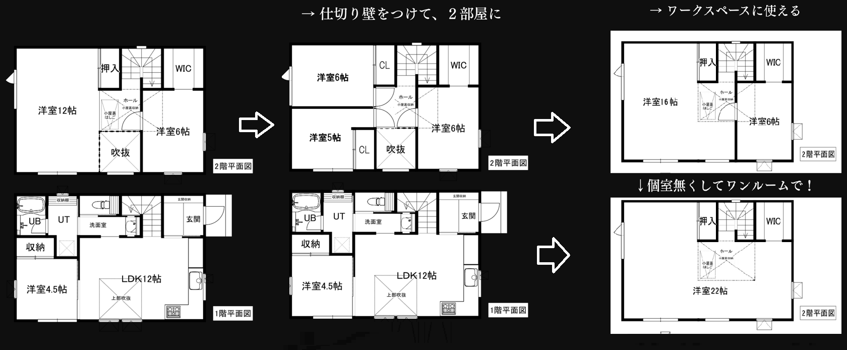 ロフト・可変間仕切り・将来間取り・収納位置など、