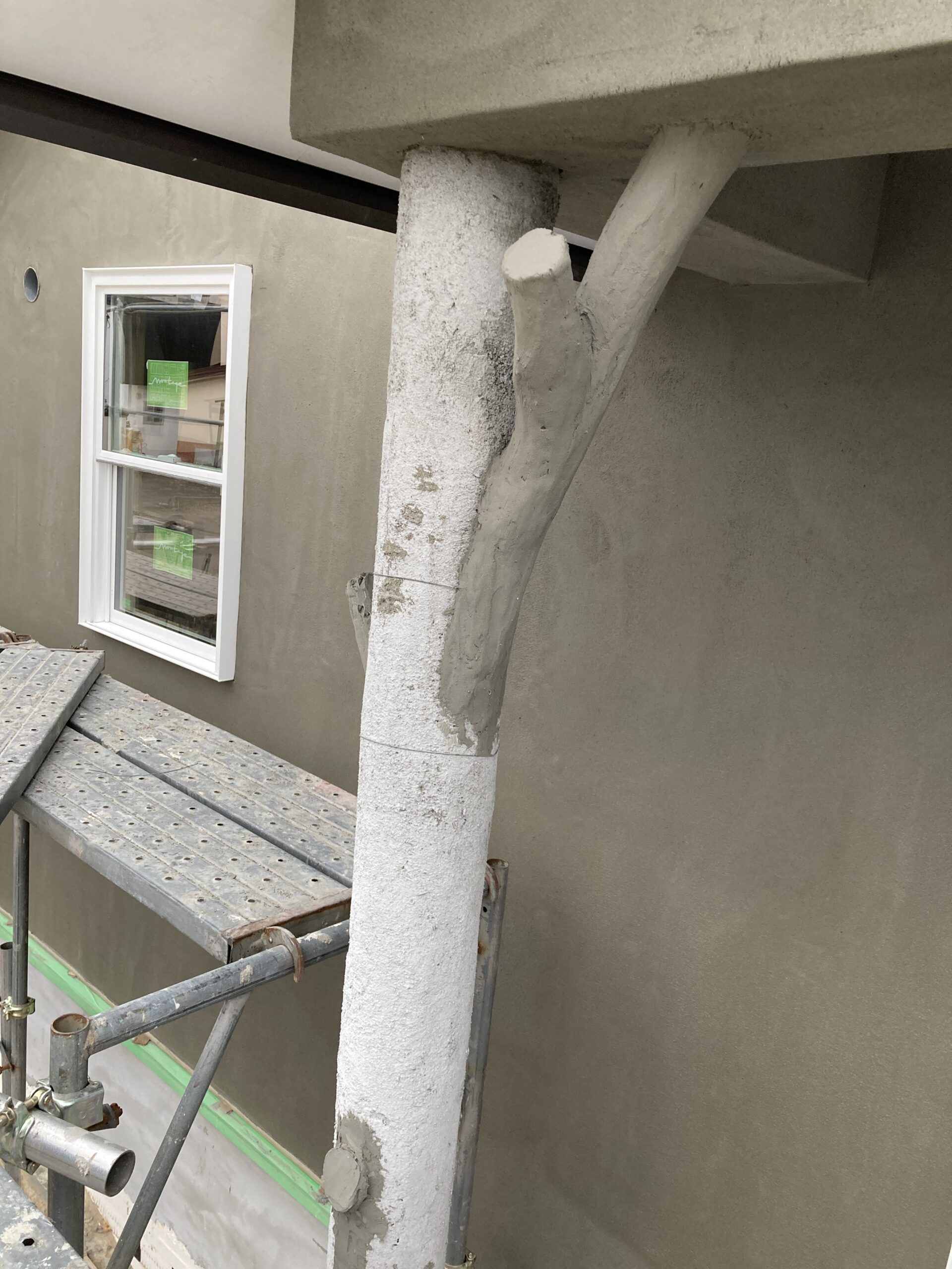 モルタルを塗った鉄骨柱から枝が生え!!!