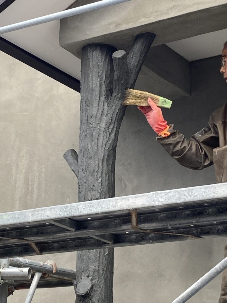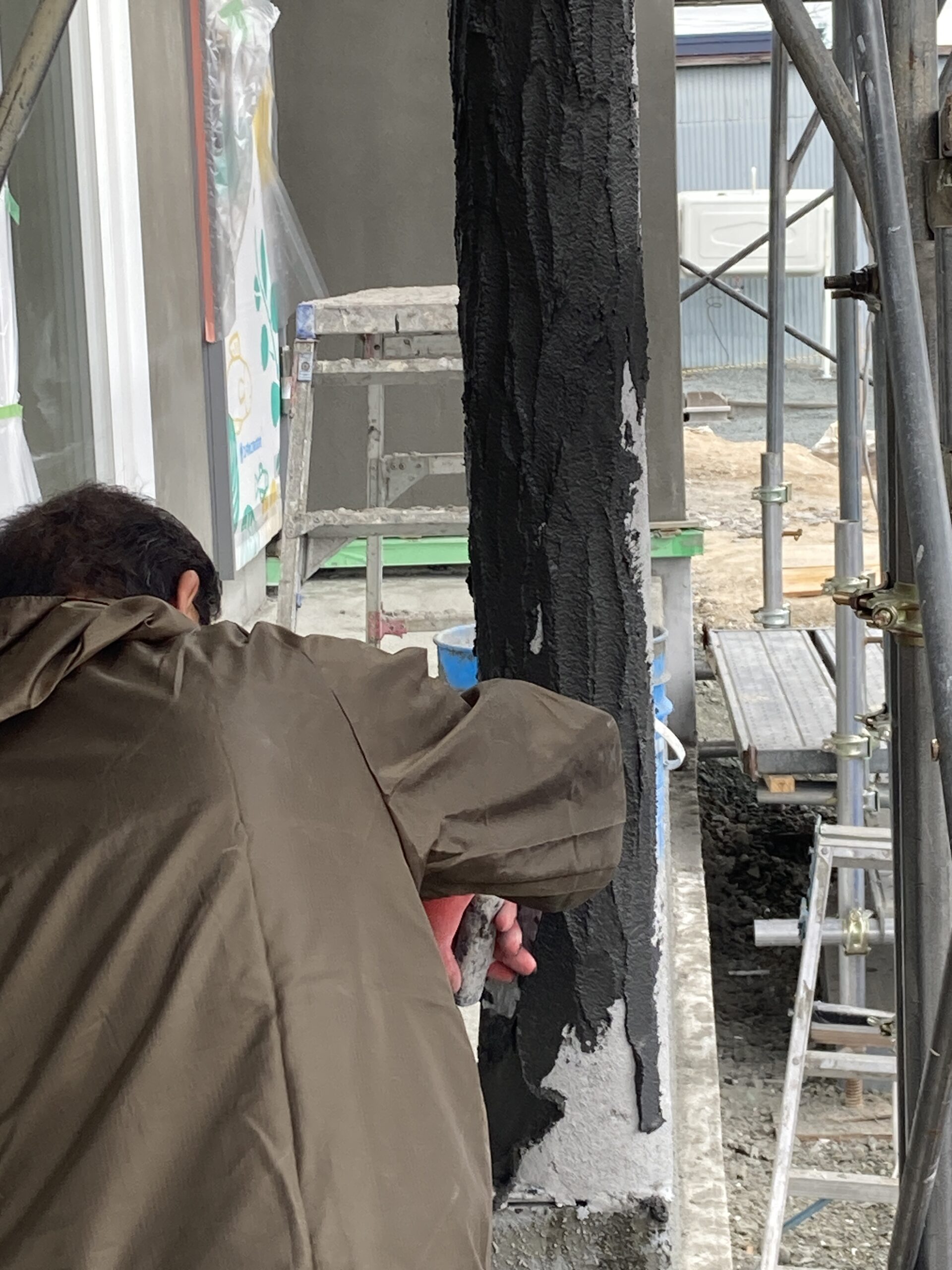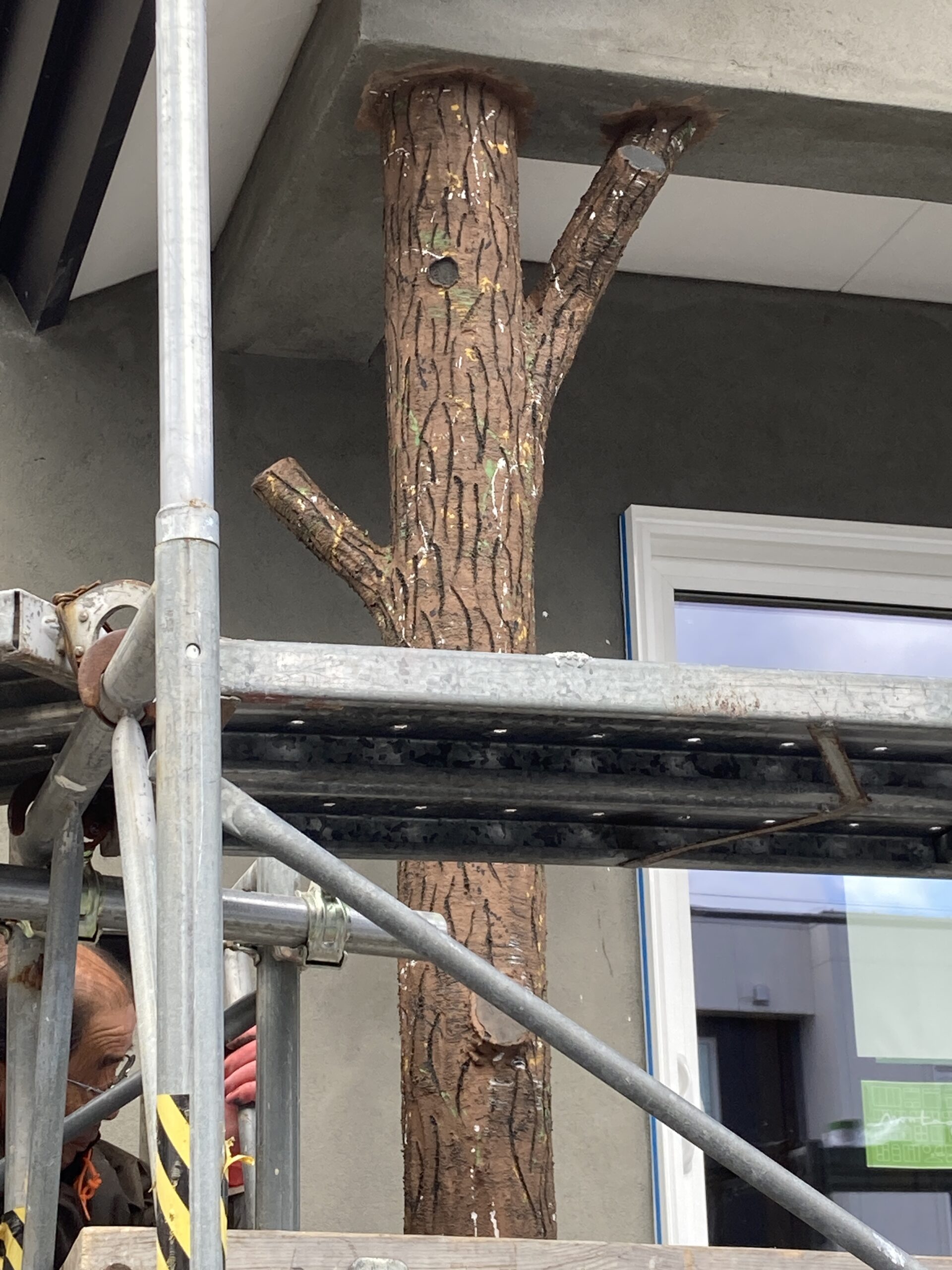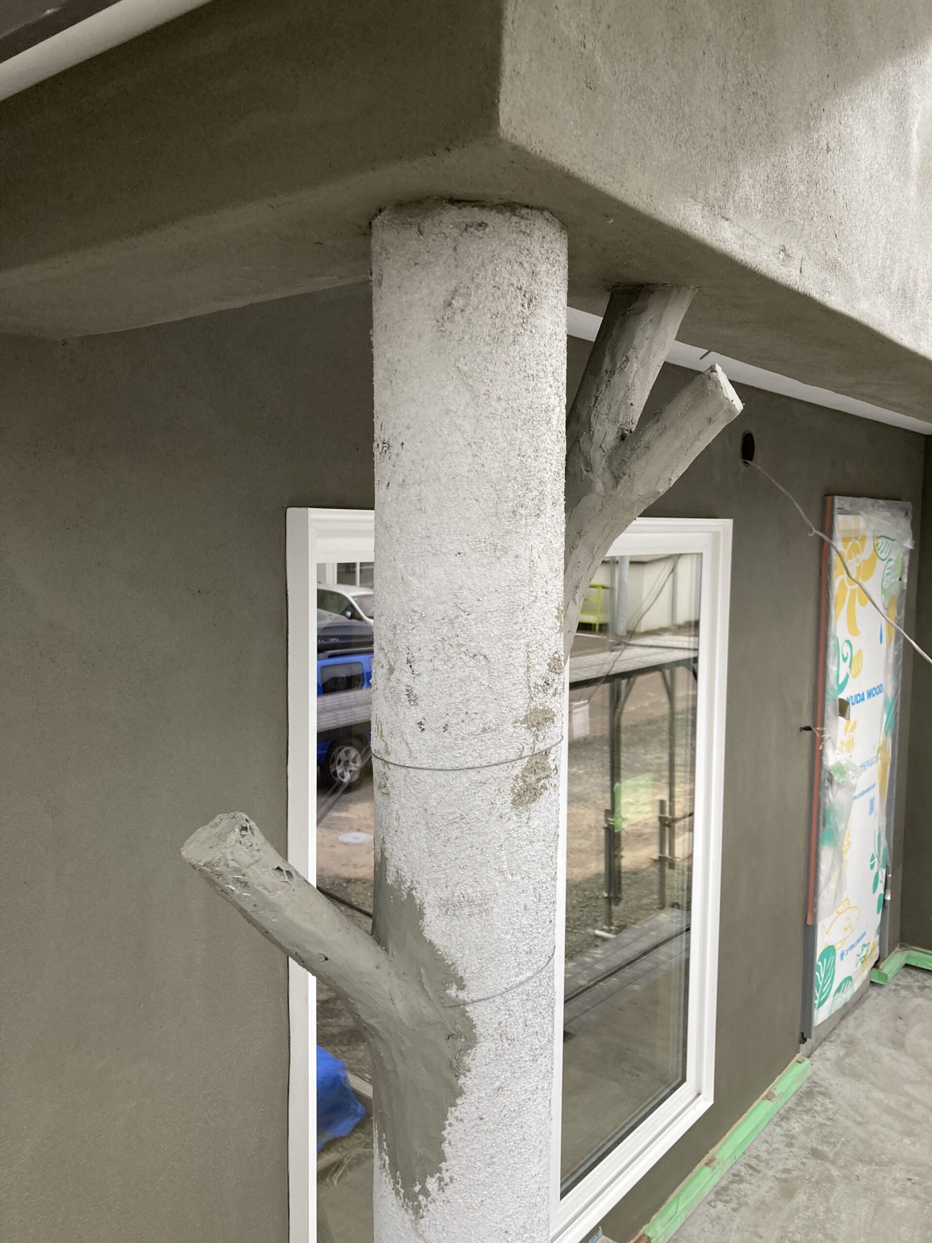 無機質な鉄骨柱が、完璧な「木」に変わりました!!!