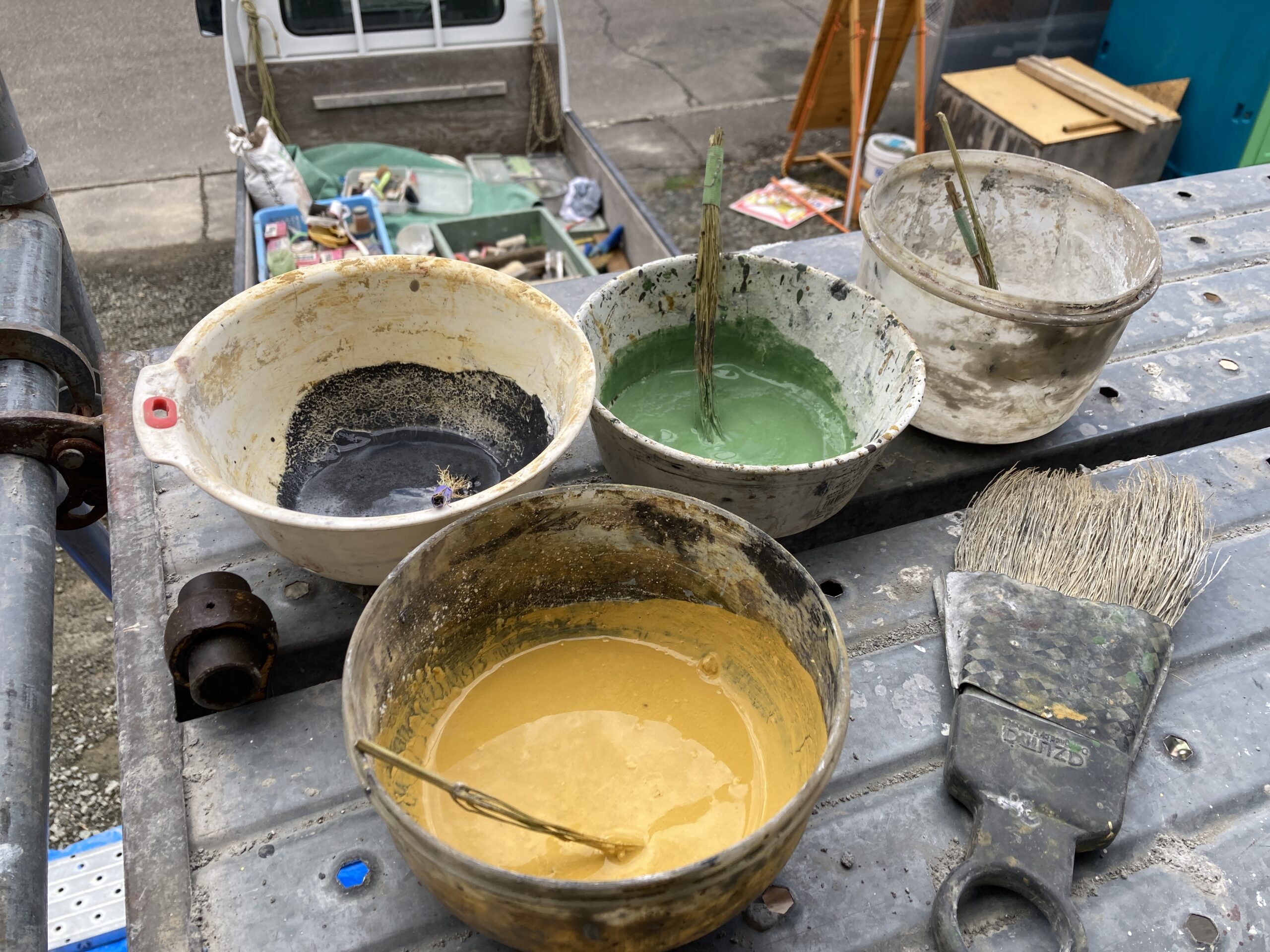 さまざまな着色剤を混ぜたモルタルを感性だけで塗っていくと・・・