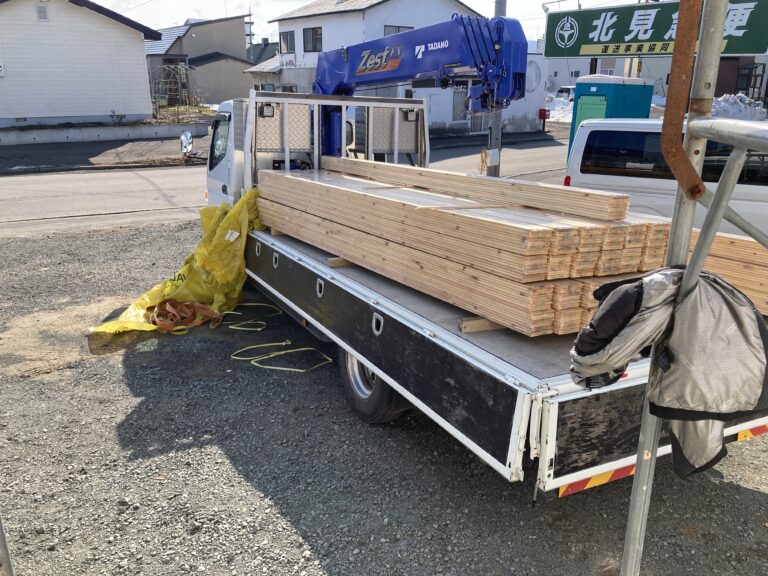 玄関ドアが付いた瞬間、家の格が決まる。北見の“おおきな平屋”進行中。