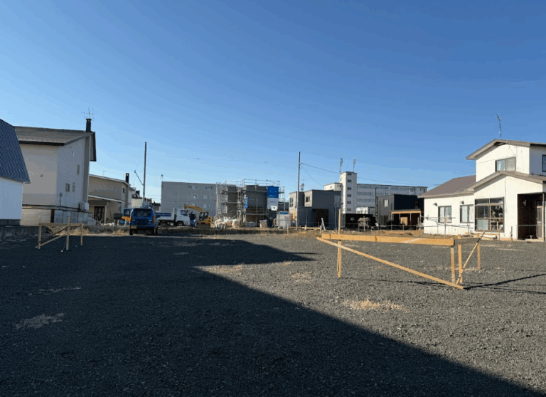 玄関ドアが付いた瞬間、家の格が決まる。北見の“おおきな平屋”進行中。