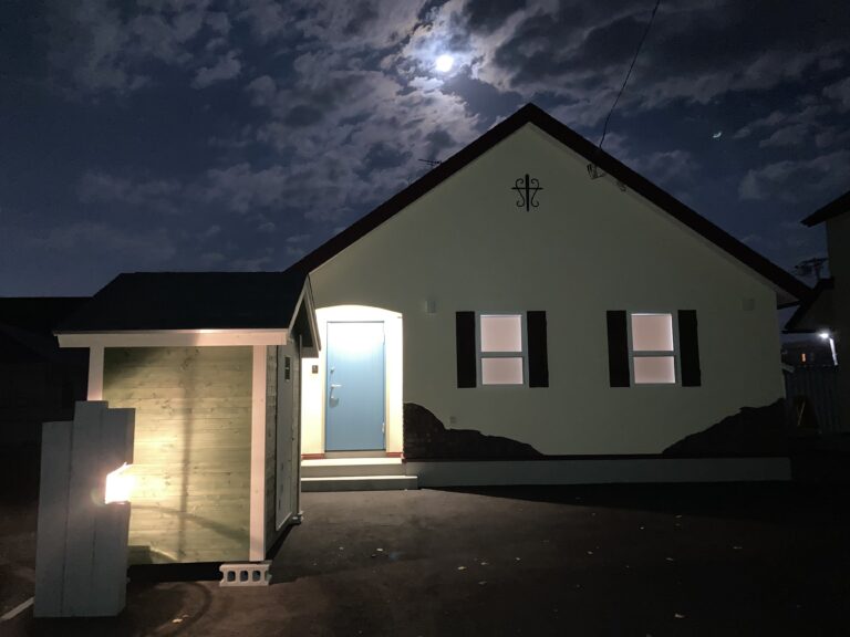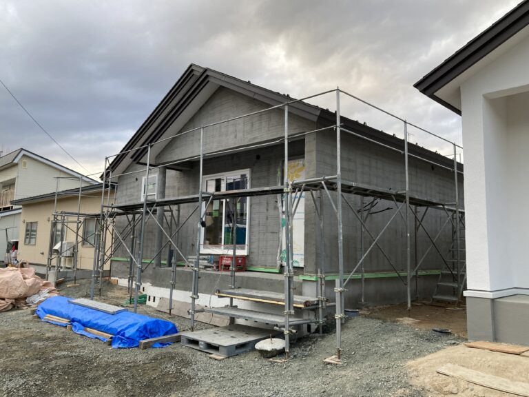 玄関ドアが付いた瞬間、家の格が決まる。北見の“おおきな平屋”進行中。