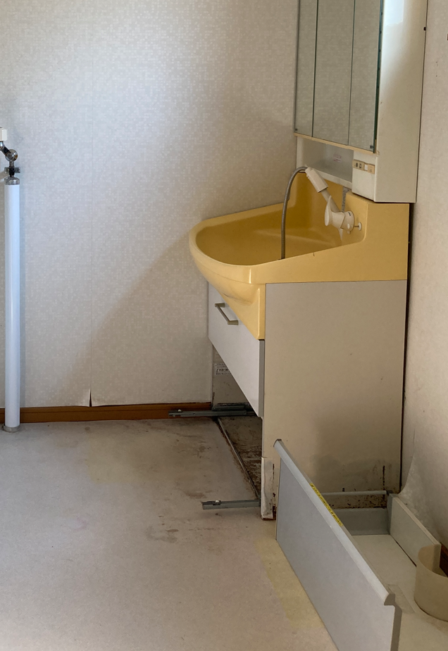 この建材を”emoie”は脱衣所、洗面所、トイレの天井と壁に仕上げとして使います。