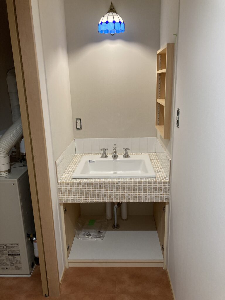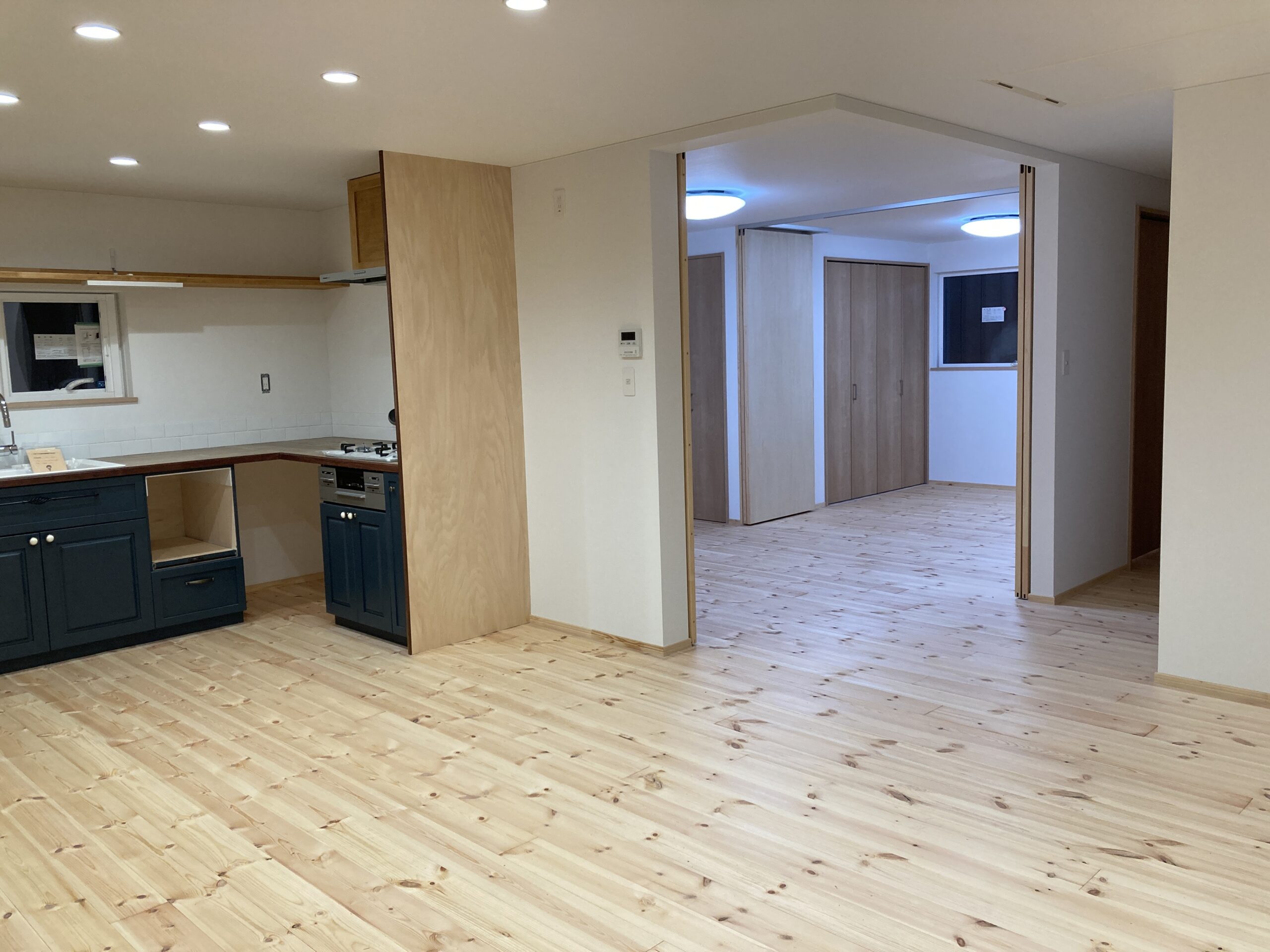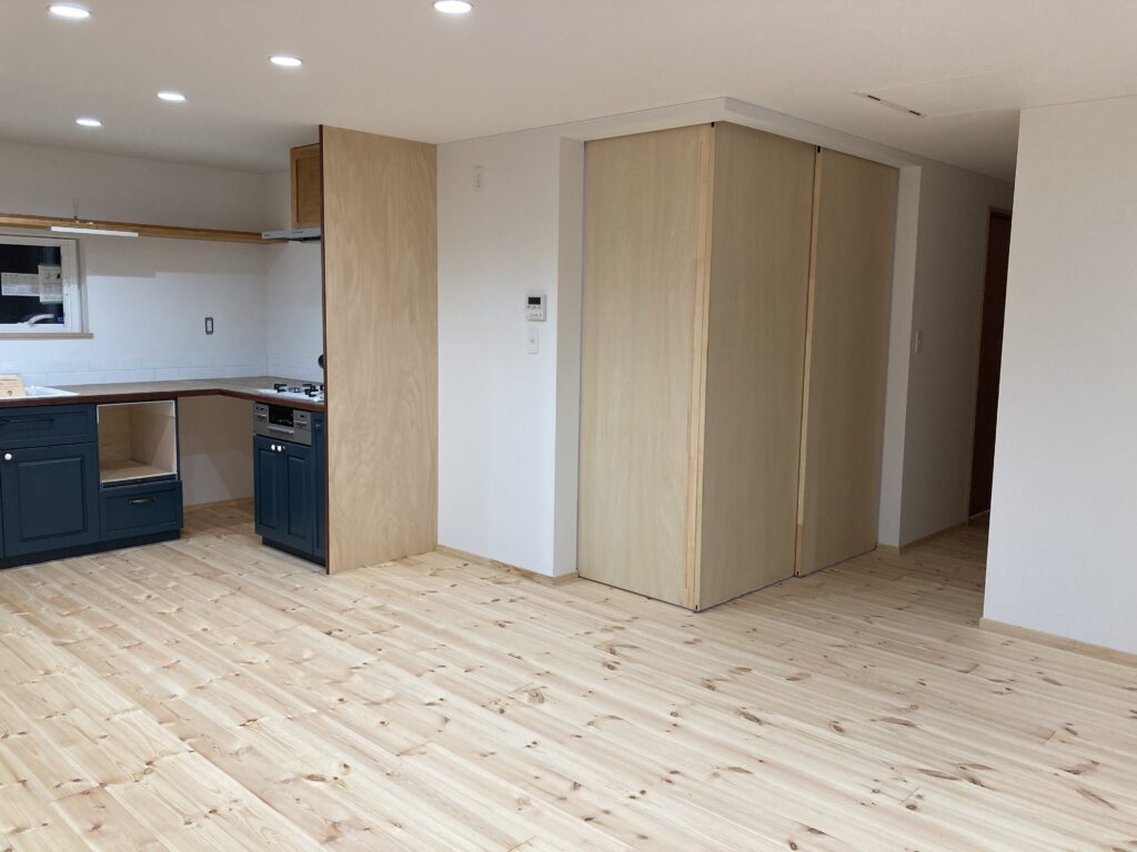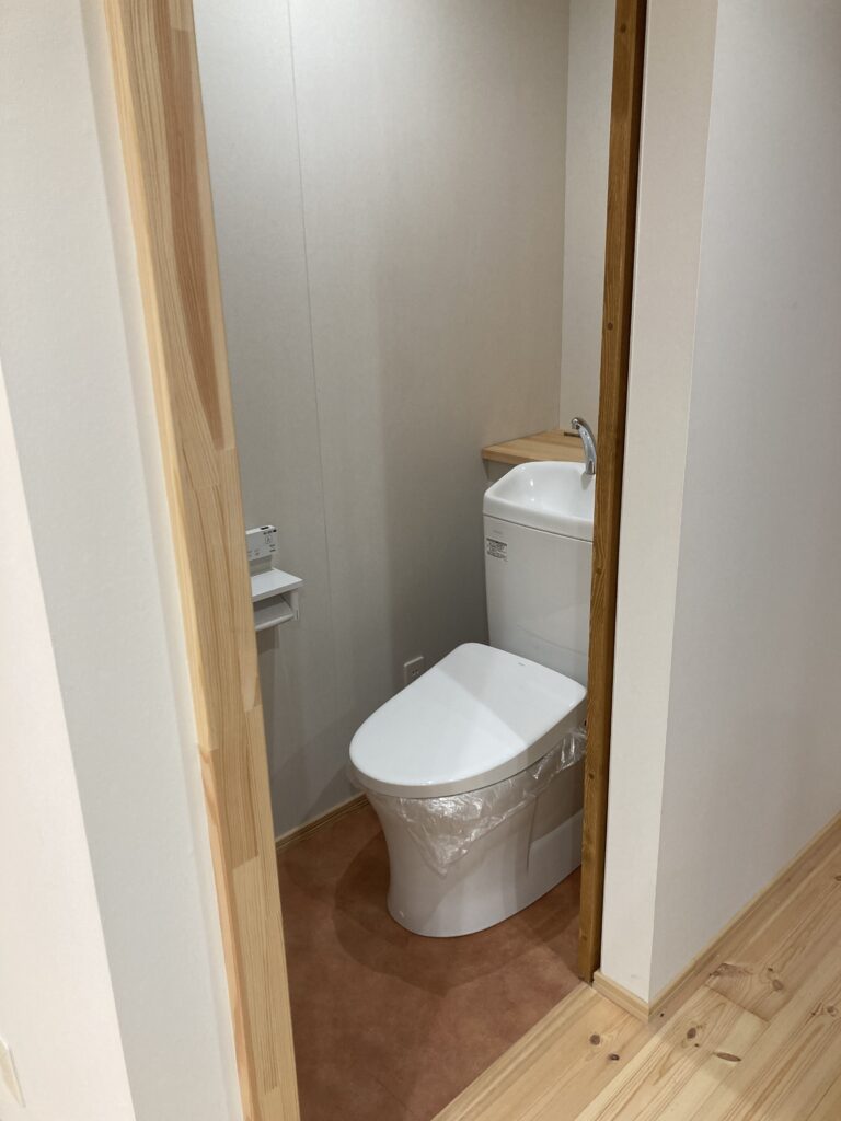 建具が付きましたので、キッチンの横に置いてあったトイレもちゃんと取り付けしております。