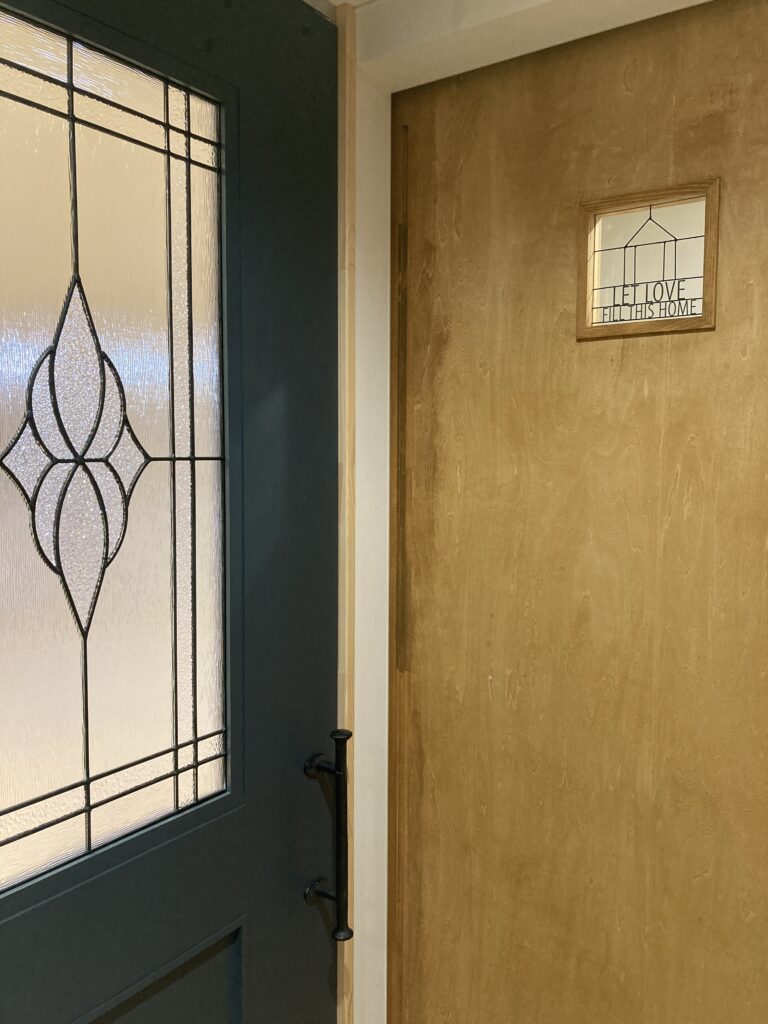 リビングとトイレの建具にはステンドグラスの明かり窓があり、玄関にやさしい光が差し込みます。