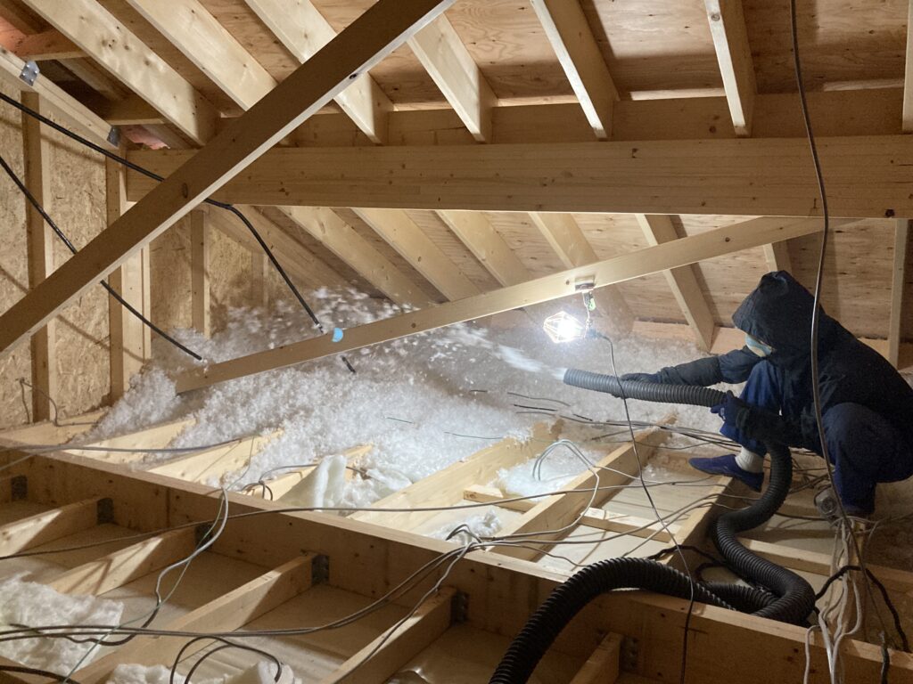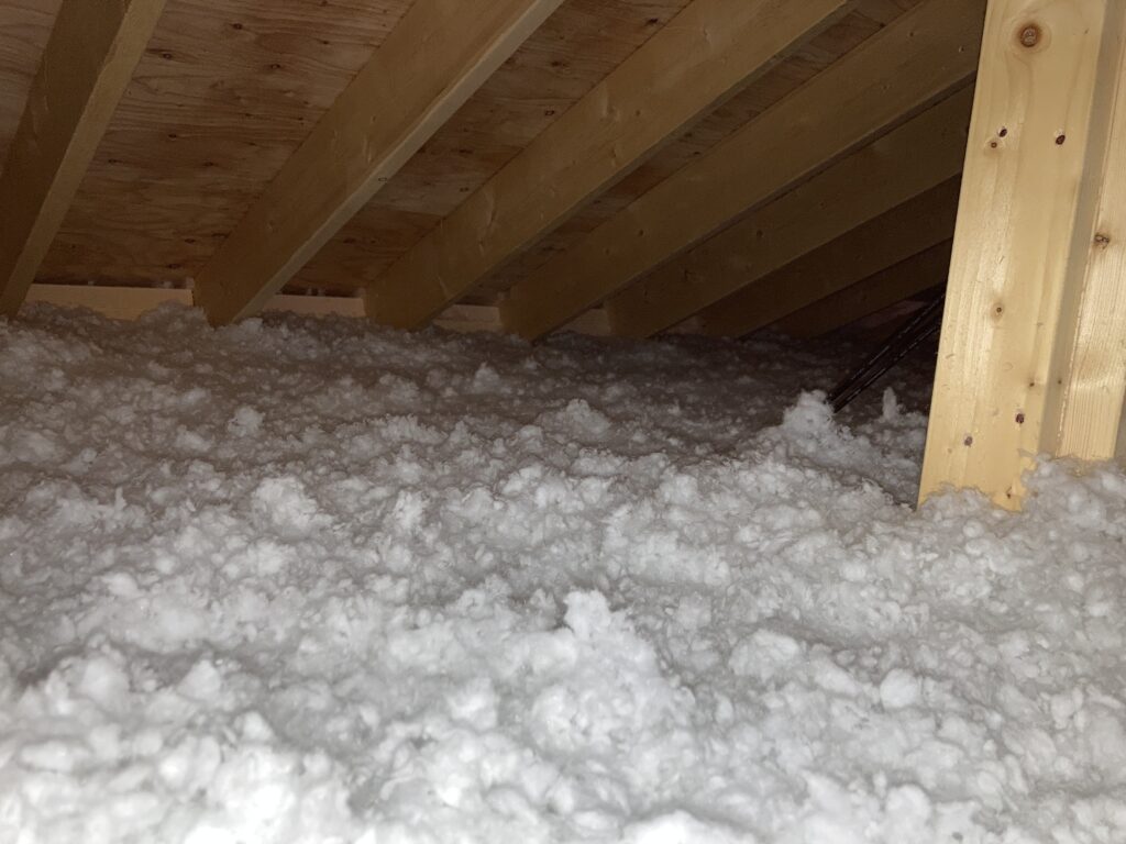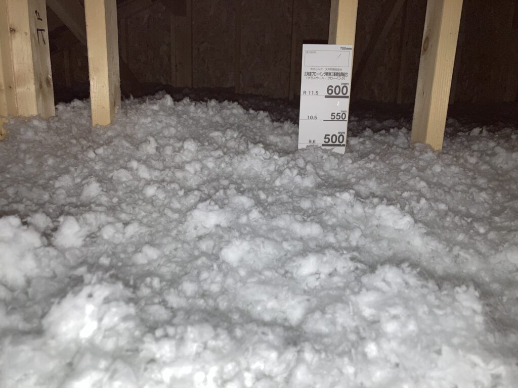 天井の断熱が不足すると室内の熱が屋根裏に逃げてしまい、冬だと屋根に積もった雪を溶かし「すが漏り」の原因となったり、夏だと屋根裏の熱で室内が暑くなってしまいますので、非常に大切な工事のひとつです。